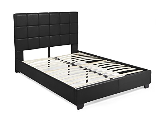 Mantua Kenville Black Upholstered Platform Bed – Easy to Assemble Faux Leather...